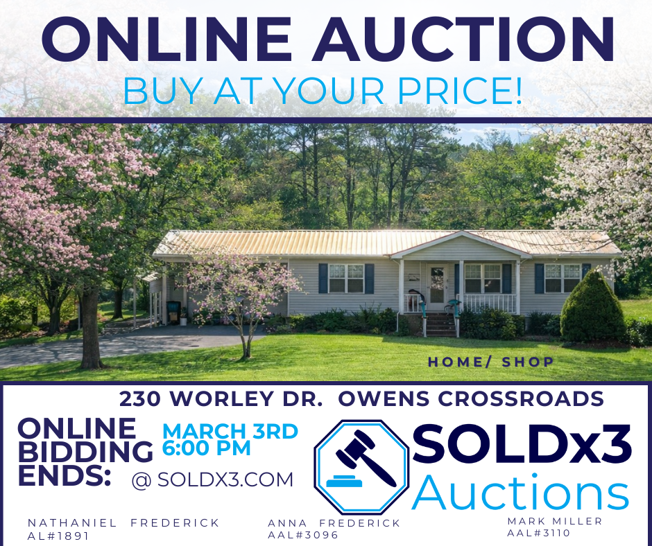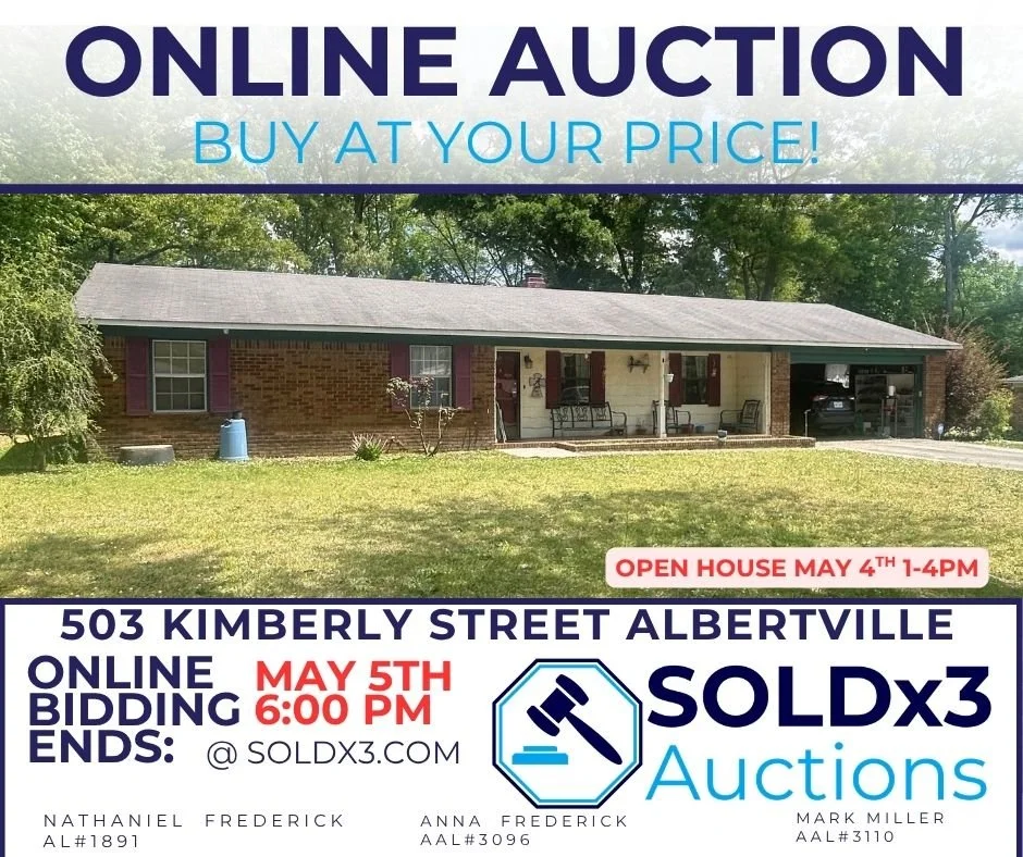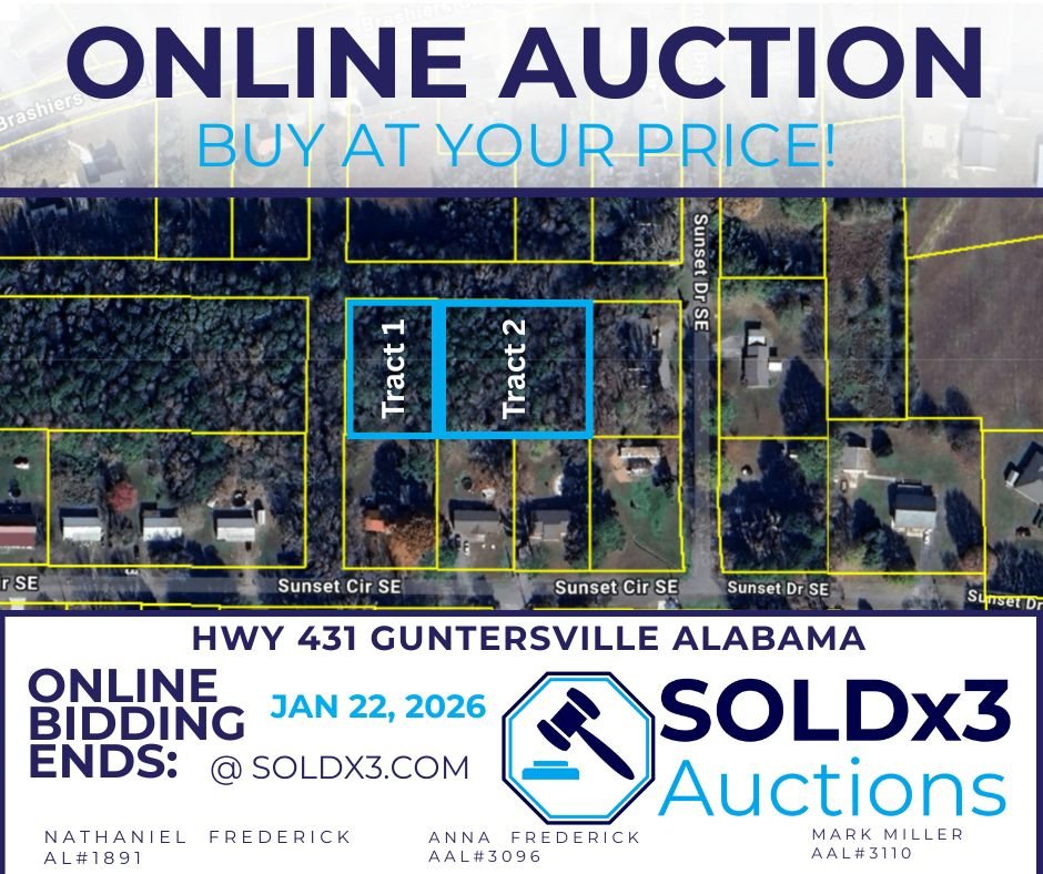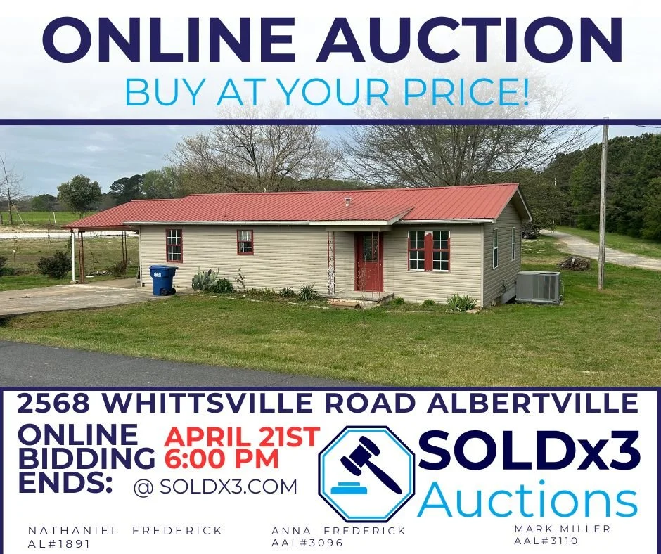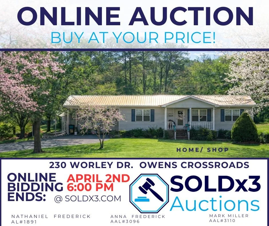 We are a North Alabama company specializing in traditional real estate, real estate auctions, and personal property liquidation through estate sales and auctions. Live or virtual - we can meet your needs. Contact us today, and let us show you how we can serve you!